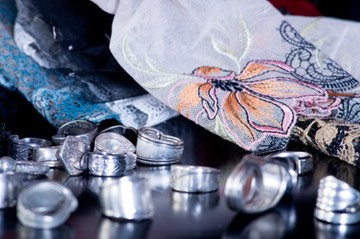 Die Handgelenke in Spitzen packen, die Finger mit Ringen schmücken